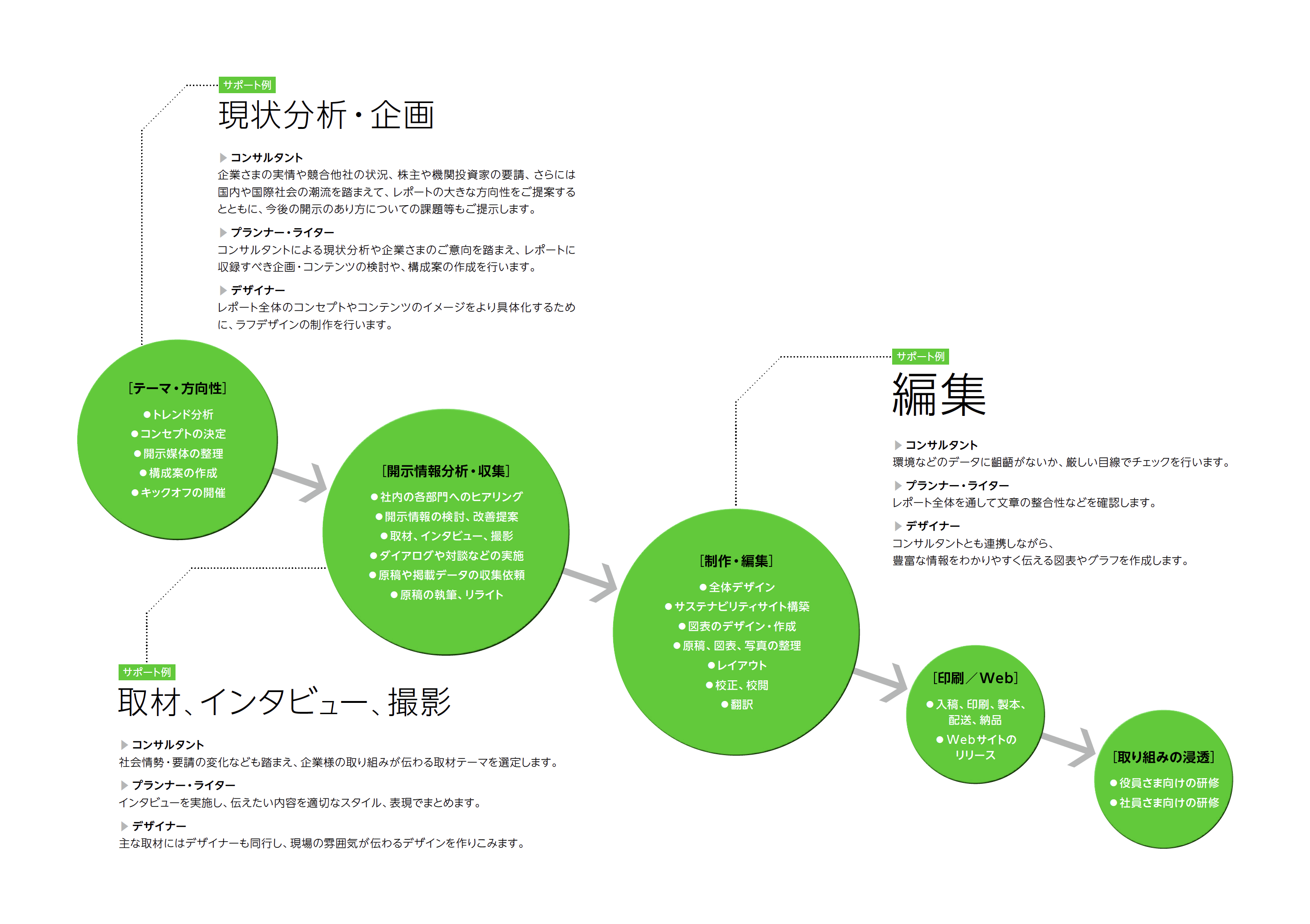 現状分析から編集・発行に至る一連の制作過程における実践的なサービスの提供をはじめ、